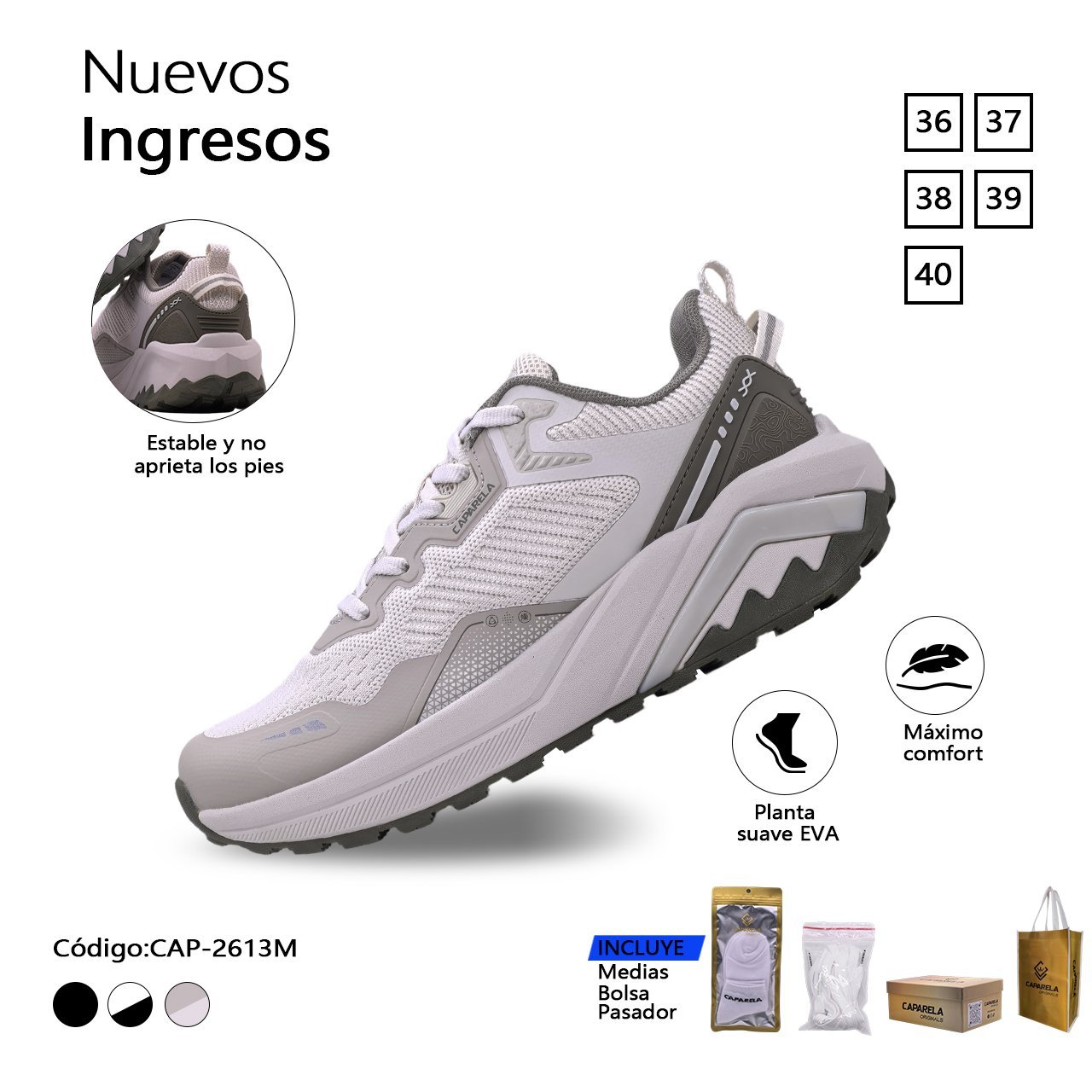 Suela EVA suave con diseño ergonómico que brinda excelente amortiguación y tracción, tiene una estructura estable que no aprieta el pie y esta hecha de materiales de malla transpirables y ligeros.