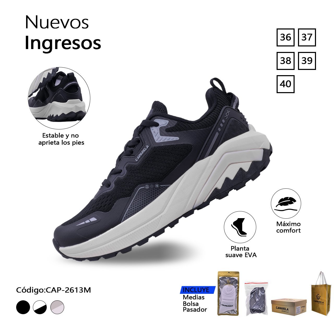 ZAPATILLA CAPARELA NEGRO TECNICO